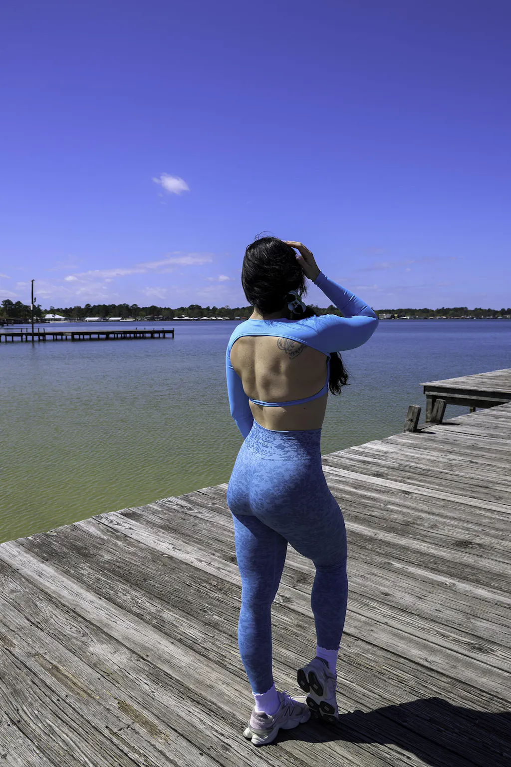 This top has so much to love about it. This classic open back long sleeve top showcases your back muscles in the best way possible. A simple design with a built in bra is perfect for your day at the gym.